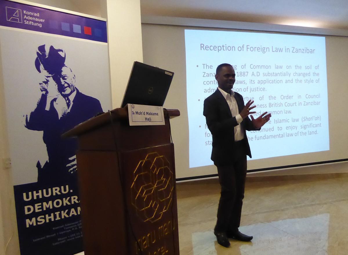 Am Donnerstag, den 19. April 2018, organisierte die Zanzibar Female Lawyers Association (ZAFELA) zusammen mit der KAS einen Workshop zu dem Thema "Gute Regierungsführung und die Rolle zivilgesellschaftlicher Organisationen am Beispiel Sansibar". Im Mittelpunkt standen als Rahmenbedingungen guter Regierungsführung auf Sansibar die Ausgestaltung des säkularen und des islamischen Rechts und ihre Vereinbarkeit sowie Implikationen für die Zivilgesellschaft.