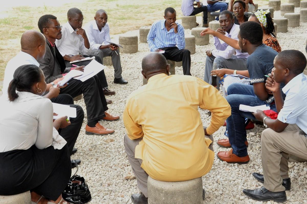 Stefanie Brinkel, KAS-Projektmanagerin in Tansania, erläutert den Teilnehmern des Workshops die anstehende Gruppenarbeit.