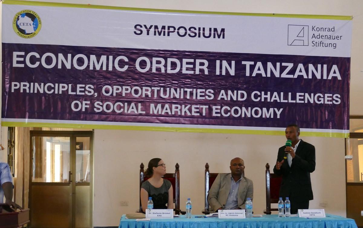 Am 11. und 12. Mai 2018 veranstalteten die Konrad-Adenauer-Stiftung und die Civic Education Teachers’ Association(CETA) im Rahmen der Veranstaltungsreihe "Wirtschaftsordnung in Tansania" zum dritten Mal ein Symposium für Schüler(innen) und Studierende über Möglichkeiten und Grenzen der Sozialen Marktwirtschaft in Tansania. Die Veranstaltung fand in Dodoma statt.