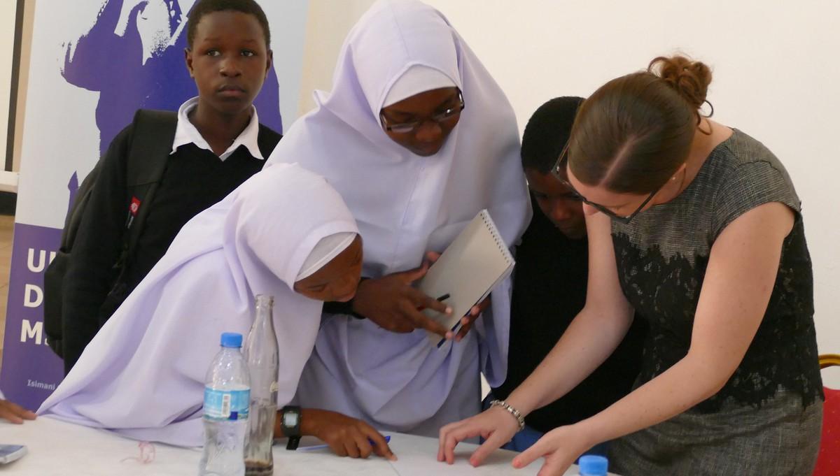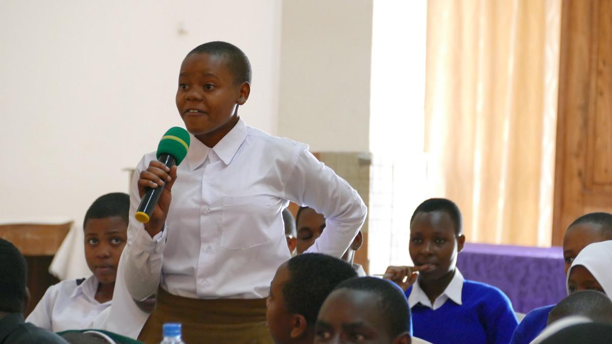 Eine Sekundarschülerin teilt ihren Standpunkt mit dem Auditorium