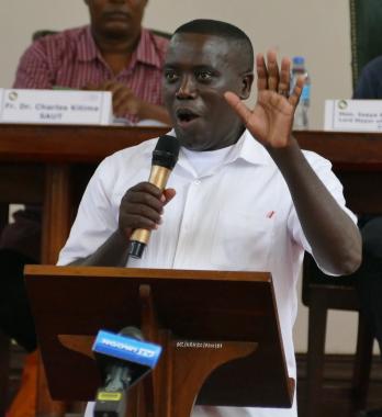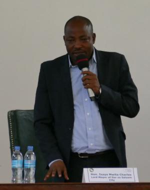 Isaya Mwita Charles (Oberbürgermeister von Daressalam) eröffnet das Symposium.