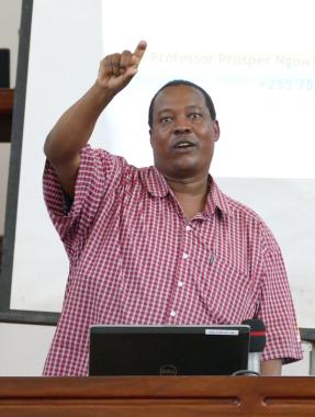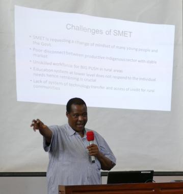 Pater Dr. Kitima informiert über die Möglichkeiten und Herausforderungen der sozialen Marktwirtschaft für Tansania.