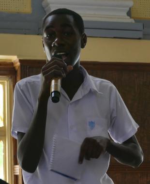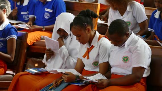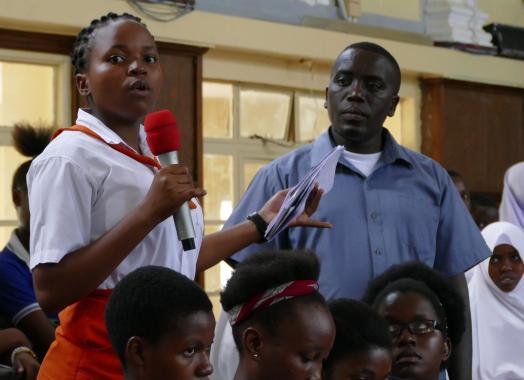 Eine Sekundarschülerin fragt nach weiteren Informationen über die Möglichkeiten der sozialen Marktwirtschaft für Tansania.