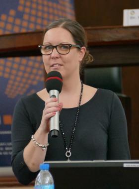 Justine Goodluck (Projektmanager von CETA) begrüßt die Teilnehmer.