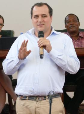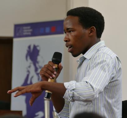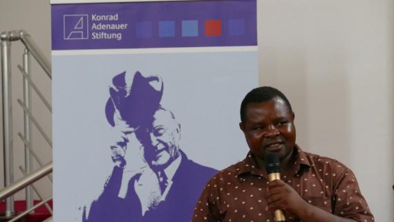 Daniel El-Noshokaty (Leiter des Auslandsbüros der KAS) ermutigt die Jugend, über ein ökonomisches Modell nachzudenken, das der tansanischen Bevölkerung Nutzen bringen könnte.