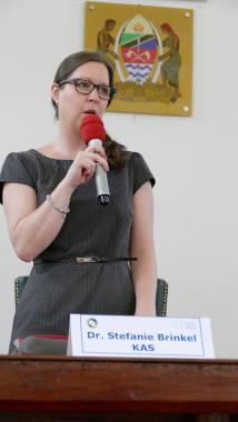 Dr. Stefanie Brinkel (Projektmanagerin der KAS) erklärt die Prinzipien der sozialen Marktwirtschaft.