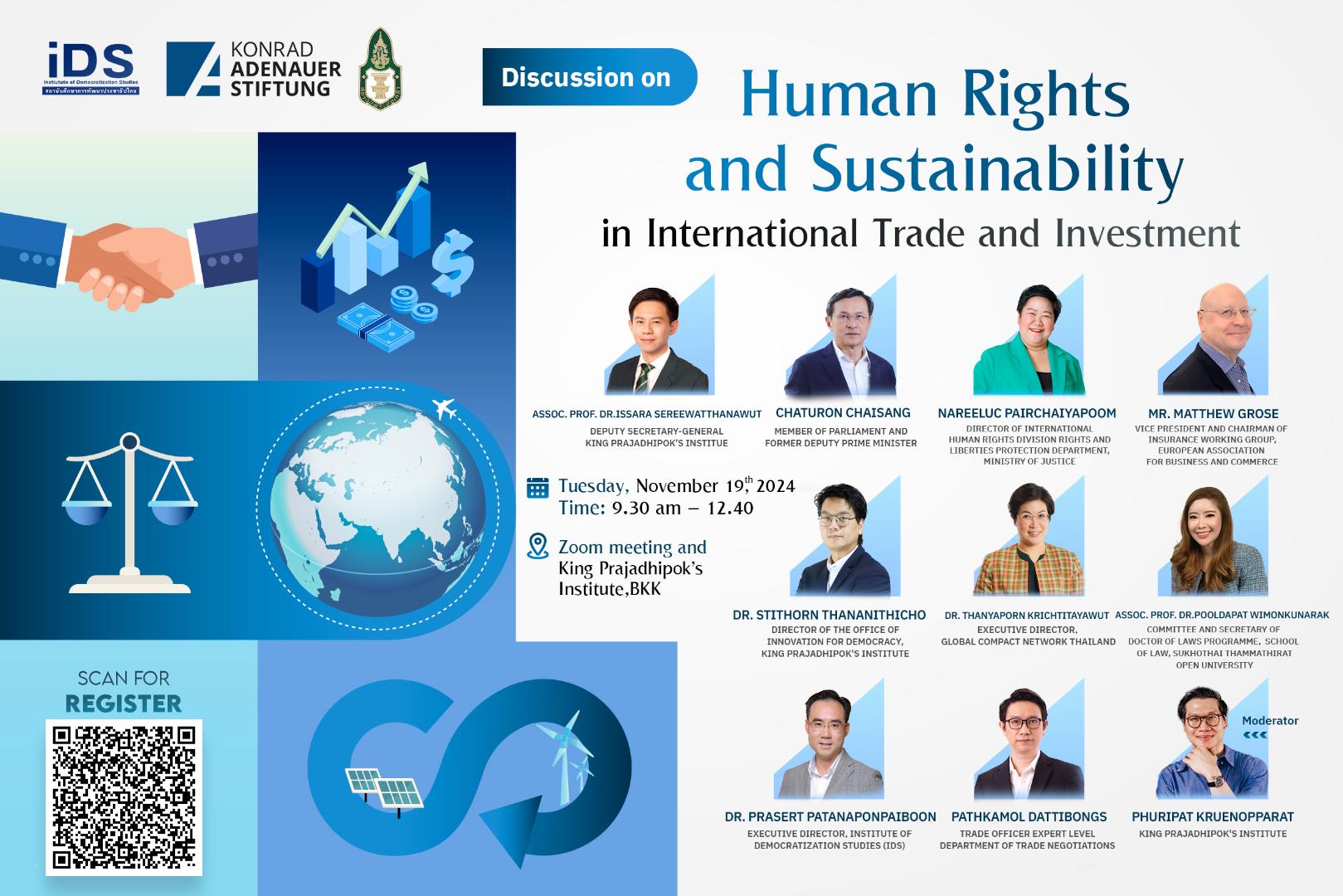 11:00 - 12:30 Discussion on “Human Rights and Sustainability in International Trade and Investment”