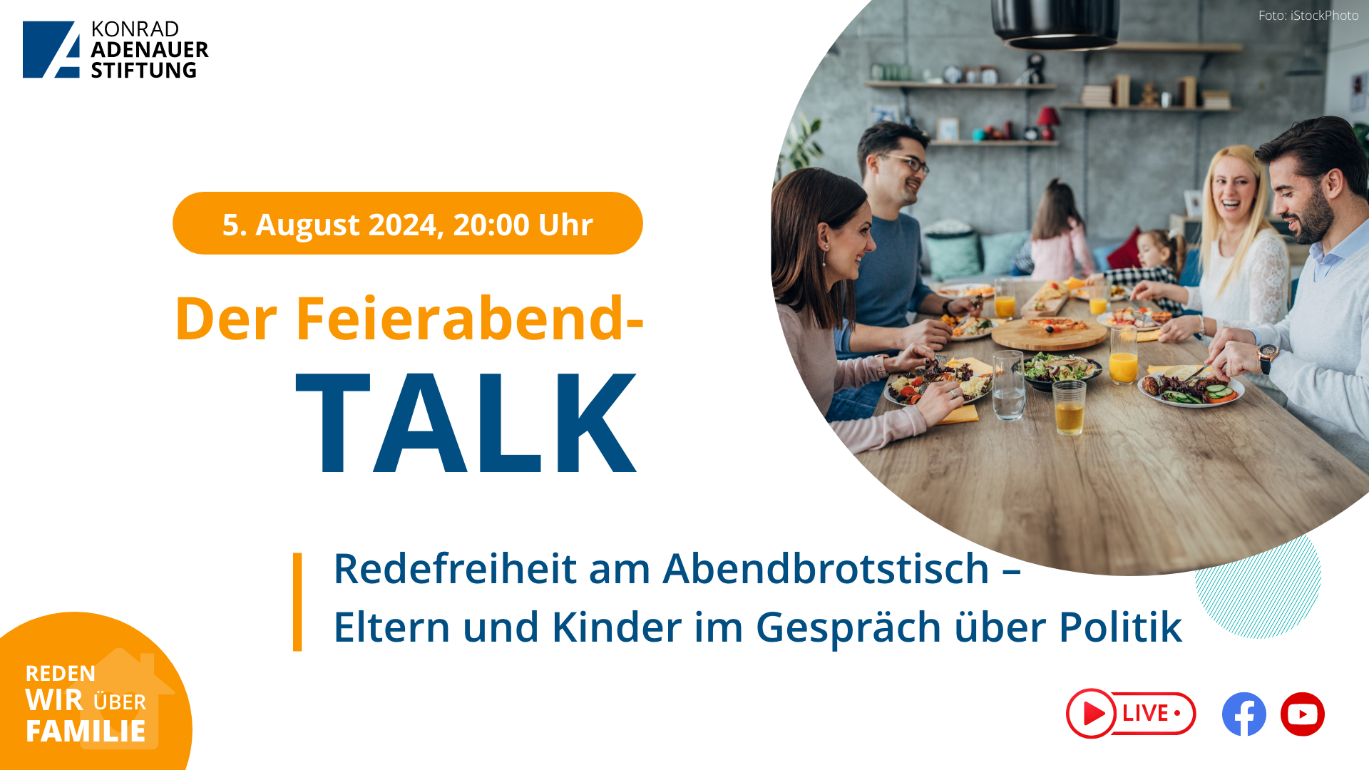 Im nächsten Feierabend-Talk „Reden wir über Familien“ wird Andrea Ludwig mit Katrin Konrad vom Verband kinderreicher Familien Thüringen und Michael Panse, ehem. Leiter Elterakademie in der Stiftung FamilienSinn, darüber sprechen, welche Themen gerade die Familien bewegen und wie man gemeinsam durch die Akzeptanz von Meinungsverschiedenheiten und Anstreben von Kompromissen einen wichtigen Beitrag als Familie für das demokratische Miteinander und die Gesellschaft leistet.