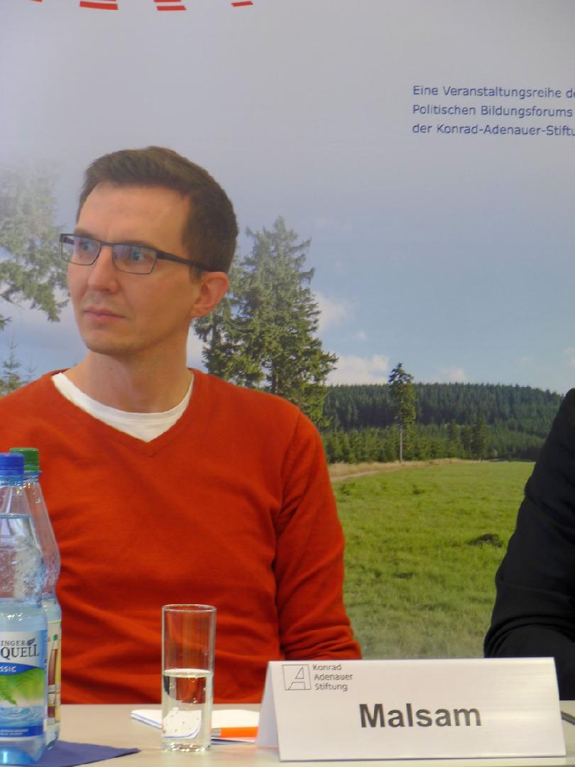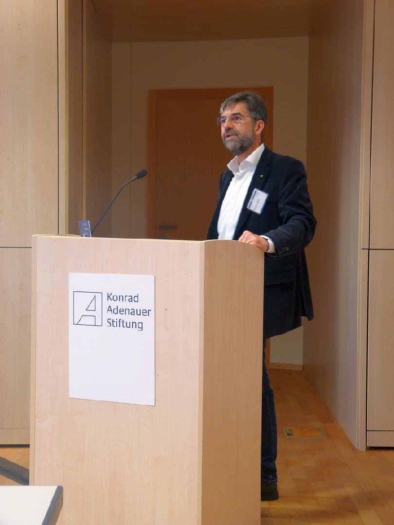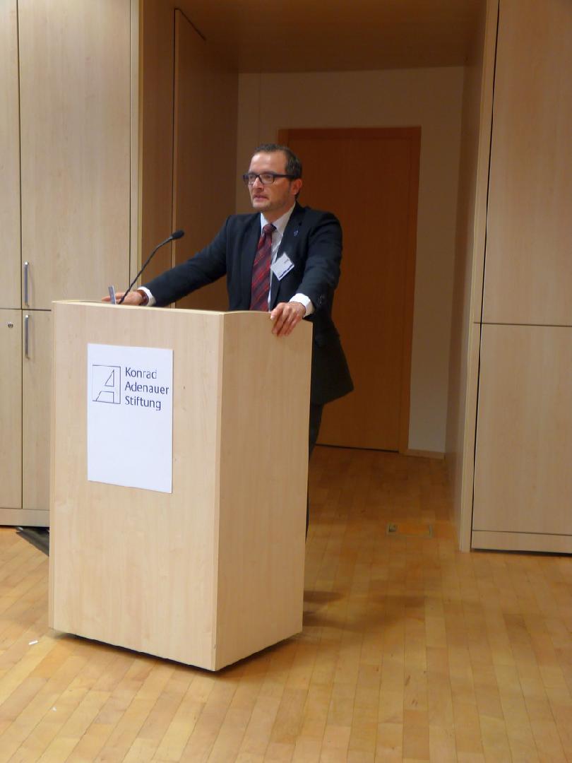 Tobias Bott als Pressesprecher pflichtete den Vorrednern bei und ergänzte, dass er als Pressesprecher der KAS in der Bundeshauptstadt Berlin vielleicht noch stärker als andere Kollegen in Thüringen im Wettbewerb mit anderen Nachrichtengebern stehe, um überhaupt mit Pressemitteilungen wahrgenommen zu werden bei der Vielzahl der Institutionen, Politiker und Ereignisse. Dies führe natürlich dazu, dass es eine genuine politische Sprache gebe, da die Adressaten andere Journalisten seien bzw. die Konrad-Adenauer-Stiftung auch von diesen als genuin politische Institution wahrgenommen werden möchte.