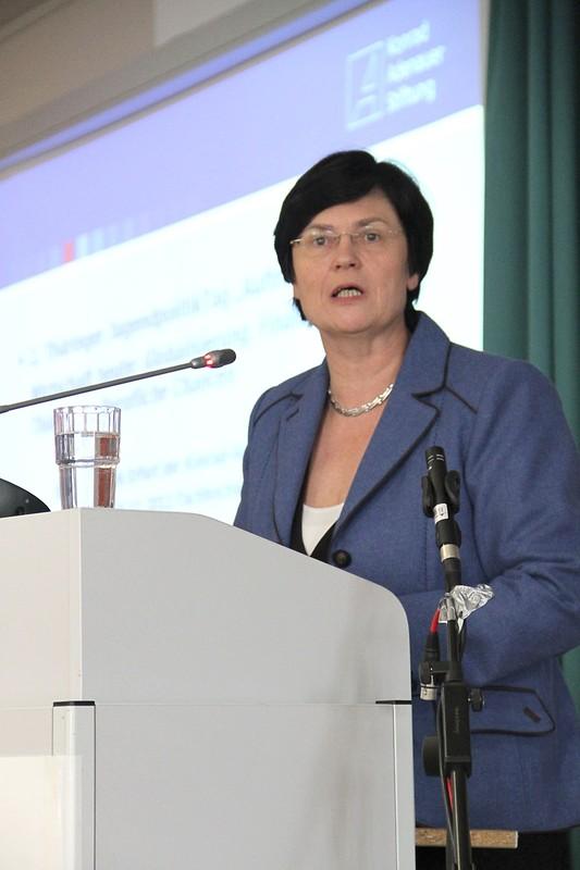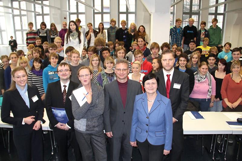 Lieberknecht lobte Thüringen, insbesondere Jena als wichtigen Industrie- und Studienstandort, denn „Die Wissenden von Heute sind die Gestalter von Morgen“. Und dieses erste Zitat zog sich wie ein roter Faden durch das Impulsreferat. Lieberknecht ging auf die Wichtigkeit von wichtigen Rahmenbedingungen ein, um das Interesse der Jugendlichen am Studienort Thüringen oder gar Jena zu wecken, und forderte dies auch von der Politik. „Die Gesellschaft lebt davon, dass Menschen sich einbringen und Werte schaffen“. Dazu wünschte die Ministerpräsidentin Transparenz über alle politischen Entscheidungen und eine offene Berichterstattung der Medien. In ihrer Rede kam Lieberknecht aber auch schnell auf die Wirtschafts- und Finanzkrise zu sprechen. Aus diesen seien die Thüringer am Ende gestärkt hervorgegangen, da tatkräftige Unternehmer ihre Mitarbeiter in der Krisenzeit qualifizieren ließen und in Thüringen sich durch Vertrauen auszeichneten. Die Thüringer Ministerpräsidentin verwies in diesem Zusammenhang allerdings auch auf drei Megatrends: Zum einen wird der Demografische Wandel, die beschlossene Energiewende aber auch die aktuellen Krisensituationen die Wirtschaft künftig beeinflussen.