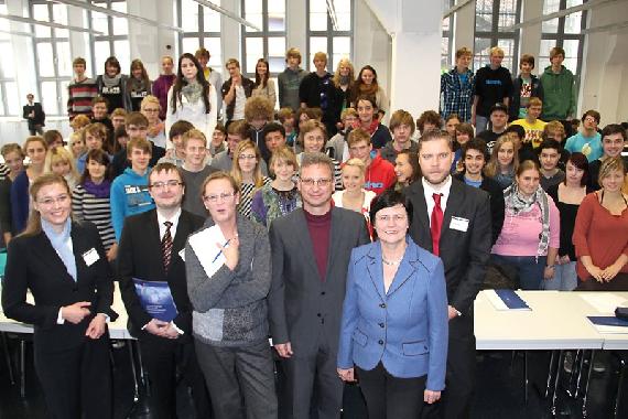 Eine Vorstellung des Tagungsortes Fachhochschule Jena übernahm Prorektor für Studium, Lehre und Weiterbildung Prof. Dr.-Ing. Burkhard Schmager. Mit 5000 Studierenden und 530 Professoren empfahl er seinen Studienort, der zwar Politik als Studienfach nicht bieten konnte, jedoch mit den Bereichen Technik, Wirtschaft und Soziales punkte. Weitere Vorteile sah er durch das Angebot zahlreicher studienübergreifender Projekte in der Fachschule sowie eine Vernetzung von Lehre, Unterricht und praktischer Arbeit. Prof. Dr.-Ing. Burkhard Schmager reichte den Themenball gleich an die Ministerpräsidentin weiter, die in einer sehr lebendigen und konkreten Rede auf die jungen Zuhörer einging.