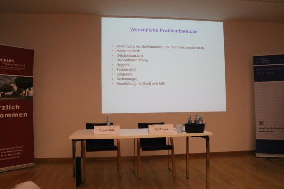 „Früher war vermeintlich alles besser!“ hört man zuweilen noch Bürger in den neuen Bundesländern bezogen auf das Gesundheitssystem der DDR sagen, doch auch hier klaffen Mythos und Wirklichkeit deutlich auseinander. Den Mythos pflegte die DDR und SED-Funktionärselite in ihrer Staatspropaganda offensiv. Die Ausbildung im Gesundheitswesen der DDR entsprach dem Stan-dard der Zeit, doch gab es erhebliche Mängel im Bezug auf den Zustand der Einrichtungen, Tech-nik und Medikamenten- und Verbrauchsmaterialversorgung. Um einen unverfälschten Blick auf die Vergangenheit zu erlangen und möglicher Unwissenheit über die wirklichen Zustände des Ge-sundheitswesens zur Zeit der DDR zu begegnen, lud die Konrad-Adenauer-Stiftung am 15.05. in das Altenburger Klinikum zur Veranstaltung „DDR- Gesundheitswesen zwischen Mythos und Wirklichkeit“. Medizinhistoriker, Journalist und Arzt Dr. Rainer Erices, der die Akten der DDR-Gesundheitsfunktionäre und Staatssicherheit aufgearbeitet und ausgewertet hat, gab an diesem Abend eine realistische Zustandsbeschreibung des DDR-Gesundheitswesens. Der Altenburger CDU-Landtagsabgeordnete Christoph Zippel, der auch gesundheitspolitischer Sprecher seiner Fraktion ist, würdigte die Wichtigkeit der Aufarbeitung des Themas und moderierte anschließend den Abend.