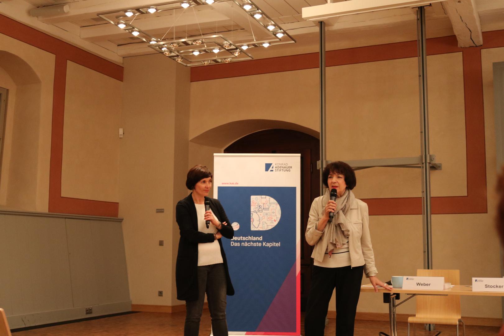 Die Veranstaltung „Das verlorene Ich – Zeitzeugengespräch mit Eva Stocker“ des Politischen Bildungsforums Thüringen der Konrad-Adenauer-Stiftung (KAS) fand im Rahmen der 27. Thüringer Tage der jüdisch-israelischen Kultur in Kooperation mit dem Förderverein für jüdisch-israelische Kultur in Thüringen am 13. November 2019 im Schloss Heidecksburg in Rudolstadt statt. Das Publikum hatte im Zuge der Veranstaltung die Möglichkeit, schon vor der Premiere im Januar 2020, einen Ausschnitt aus Evas kommendem Dokumentarfilm anzuschauen. Anschließend moderierte die freie Moderatorin Blanka Weber das Gespräch zwischen dem Publikum und der Regisseurin. Nach einer Begrüßungsrede des wissenschaftlichen Mitarbeiters des Politischen Bildungsforums Thüringen der KAS, Steven Bickel, erzählte Eva den Zuschauern von ihrer eigenen Lebensgeschichte. Sie sprach von ihrer unglücklichen Kindheit bei Adoptiveltern und darüber, dass sie als Jugendliche einen Schuhkarton in dem Haus ihrer Adoptiveltern fand, in dem ein Zettel mit den Namen ihrer Eltern, ihrem Geburtsort Košice und einer Erklärung auf den Verzicht elterlicher Rechte lag.  Erst als sie 18 Jahre alt war, konnte Eva weitere Nachforschungen über ihre Herkunft anstellen. Sie konnte jedoch nicht viel mehr herausfinden. Das Trauma ihrer Kindheit spiegelte sich in ihrer panischen Angst vor Zügen, die sie als Kind plagten, und darin, dass sie auch heute noch ungern mit dem Zug fährt.