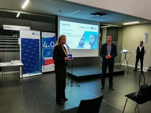 Gemeinsam mit dem Leiter des Thüringer Kompetenzzentrum Wirtschaft 4.0, Dr. Mauricio Matthesius eröffnete die Landesbeauftragte der Konrad-Adenauer-Stiftung für Thüringen, Maja Eib den Vortragsabend und betonte dabei, das Fake-News und Deep Fake-Videos eine große Herausforderung für eine demokratische Kultur und freie Meinungsbildung bilden und keine Erweiterung der Vielfalt der Positionen ist. Im Gegenteil, sie konterkarieren damit die Idee einer offenen Informationsgesellschaft, so Eib. Sie ging dabei auf jüngste Untersuchungen ein, die aufzeigen, dass die zunehmende Verbreitung dieser Technik und Anwendung durch böswillige Akteure neue Möglichkeiten für schädliche Eingriffe in den politisch- gesellschaftlichen Diskurs haben und damit den gesellschaftlichen Zusammenhalt untergraben. Damit können, noch gravierender als Fake News, manipulierte Videos, sogenannte Deep Fakes, gefährliche Auswirkungen auf Gesellschaft und Demokratie haben.