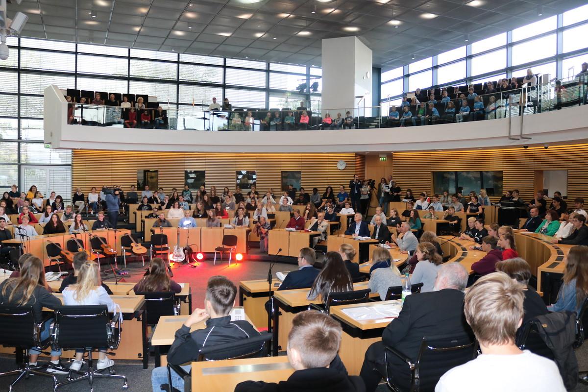 Anhand des Bürgerkriegs in Syrien machte sie deutlich, dass die deutschen Werte und die Demokratie nur ein dünner Lack seien und man als Gesellschaft hart daran arbeiten müsse, die Demokratie und Zivilisation zu erhalten. Sie berichtete vom Völkermord an den Jesiden und den Gräueltaten des IS. Auf die Frage wie es zum Krieg und letztlich Völkermord kommen konnte, antwortet Tekkal: durch Entmenschlichung. Entmenschlichung sei der erste Schritt auf dem Weg in den Krieg und der Vernichtung einer ganzen Gemeinschaft. Dies geschehe besonders dann, wenn die schweigende Mehrheit die Ereignisse mit trage und sich nicht dagegen wehre. Düzen Tekkal monierte, dass Demokratie häufig nicht ausreichend und richtig vermittelt werden würde und dass daher auch Deutsche für den IS an der Front kämpfen würden. In ihrem Buch entwarf sie das Konzept der „Bösen Zwillinge“, welches sie auch in ihrem Vortrag den Schülern erläuterte. Die eine Seite der bösen Zwillinge bestehe dabei aus Islamisten und religiösen Extremisten und die andere Seite aus Rassisten und Rechtspopulisten. Beide Seiten der bösen Zwillinge sind eine Bedrohung für die Demokratie und Rechtstaatlichkeit und das friedliche Zusammenleben aller Menschen. Außerdem verwies Düzen Tekkal auf die DDR-Bürgerrechtlerin Freya Klier und ihr Zitat „du sollst dich erinnern“ und stellte die Frage was man aus der Vergangenheit lernen könne und müsse und wieso Völkermorde immer wieder geschehen. Der Umgang mit Menschen im Krieg oder im Völkermord zeigt dabei, wie Menschen mit Menschen umgehen, wenn diese vorher entmenschlicht wurden. Daher sei es besonders wichtig als Demokraten aktiver, lauter und kritischer zu werden. Düzen Tekkal berichtete von den Ereignissen im Irak, wie Missbrauch, Vergewaltigung und Versklavung und sprach aber auch gleichzeitig von Geschichten der Hoffnung und forderte die Schüler dazu auf, mit Hasspredigern als Werteprediger zu konkurrieren und sich auf kleinen Ebenen für ihre Demokratie einzusetzen. Weiterhin kritisierte sie, dass es seit der Flüchtlingskrise 2015 zwar eine Willkommenskultur aber keine Ankommenskultur gegeben habe. Viele Schüler fragten Tekkal nach den Gründen des Wahlerfolgs der AfD, welche sie damit beantwortete, dass viele Fragen und Themen der Bürger lange Zeit nicht angesprochen oder ignoriert wurden und die AfD genau diese Themen anspreche, was eine Erklärung für ihren Wahlerfolg ist. Sie forderte auch, um der AfD Wind aus den Segeln nehmen zu können, ein Einwanderungsgesetz und eine Überarbeitung des Asylrechts. Düzen Tekkal ist der Meinung, dass das Bleiberecht nicht vom Herkunftsland abhängig gemacht werden solle, sondern von den Werten, die die Migranten teilen und vertreten und deren Übereinstimmung mit den deutschen Werten.