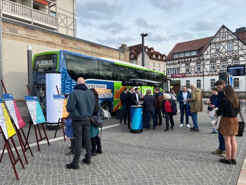 Fast alle Tour-Stopps sind dabei wirklich gut angenommen worden. In Erfurt besuchten über 400 Interessierte unseren Stand. Besonders erfreulich waren auch die Begegnung und Diskussion mit den insgesamt sieben Schulklassen. Trotz vieler unterschiedlicher Meinungen überwiegt bei uns die Freude über die spannenden Erfahrungen dieser Woche.