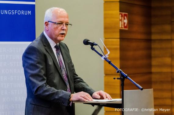 Herr Seeger stellte aus der Sicht des Bundesamtes für Verfassungsschutz dar, dass der Terrorismus der 1970er bis 1990er Jahre das Sicherheitsgefühl und die Sicherheitsgesetzgebung in Deutschland maßgebend geprägt hat. Die Sicherheitslage heute sei allerdings eine andere als vor 40 Jahren. Sie sei wesentlich komplexer. Die größte Bedrohung wäre der islamistische Terrorismus. Dieser habe außer dem Wort „Terrorismus“ mit dem, was die Bundesrepublik vor 40 Jahren erlebten, wenig gemein. Weder ideologisch, noch was Tatmittel oder Opferauswahl angehe. Es gehe den Terroristen des IS oder von Al-Qaida nicht darum, Spitzenpolitiker oder Wirtschaftsführer zu töten, wie es die RAF tat. Sie wollen im wahrsten Sinne des Wortes „Terror“ Schrecken verbreiten: so viele Menschen wie möglich töten und nach Möglichkeit bei laufender Kamera und Live-Übertragung. Sie können hochprofessionelle Terrorkommandos sein oder hochradikalisierte Kinder, Jugendliche oder Heranwachsende, die einfachste Mittel als Waffen einsetzen, um Mitmenschen zu töten. Diese Menschen und ihre Hintermänner würden nicht mehr den demokratischen Rechtsstaat in Frage stellen, sondern vielmehr seine Fähigkeiten, die Sicherheit seiner Bürger zu gewährleisten. Die Lage sei auch deshalb komplex, weil die Menschen es nicht nur mit einer anderen Qualität, sondern auch mit einer anderen Quantität der terroristischen Herausforderung zu tun hätten. Annährend 11.000 Salafisten in Deutschland, über 1.800 Personen, die zum islamistisch-terroristischen Personenpotential gezählt werden, allein rund 650 Hinweise in diesem Jahr aus der Bevölkerung auf Gefährdungssachverhalte. Und über 30 erfolgreiche Terroranschläge in Europa seit Anfang 2015, davon sieben in Deutschland. Komplex sei die Lage für das Bundesamt auch deshalb, weil nicht nur islamistischer Terrorismus das Alltagsgeschäft prägt, sondern zeitgleich auch ein Anstieg von gewaltbereitem Rechtsextremismus, Linksextremismus, sowie die Bedrohungen durch Cyberangriffe und Spionage festgestellt werden müssten. Hinzu trete, dass nahezu alle diese Bedrohungen Bezüge ins Ausland haben. Aber auch außenpolitische Krisen und Konflikt, humanitäre Katastrophen und Migrationsströme würden die Dienste vor große Herausforderungen. Die Behörden seien nicht mehr in einem symmetrischen, bipolaren Staatensystem, sondern zunehmend in einer multipolaren Weltordnung, die von asymmetrischen Kriegen, asymmetrischem Terrorismus und asymmetrischen Attacken im Cyberraum bestimmt werde, tätig. Das Bundesamt operiere nun mit einem umfassenden Sicherheitsbegriff, in dem äußere und innere Sicherheit zusammenfallen. Wäre Herr Seeger Geschäftsmann könne er sagen: in allen Geschäftsfeldern des Verfassungsschutzes boome es. Leider sei dies keine positive Nachricht. Hinzu käme, dass der technische Fortschritt weder auf die Rechtslage noch auf die Sicherheitslage Rücksicht nehmen würde. Die Gegner der Demokratie würden alle Möglichkeiten nutzen, die die Technik bietet. Aus diesem Grund mahnte Herr Seeger an, dass die Sicherheitsbehörden richtig aufgestellt sein müssen, um diese Herausforderungen zu bewältigen. Die Ausstattung und die Befugnisse der Sicherheitsbehörden müssten angepasst sein an die Sicherheitslage.