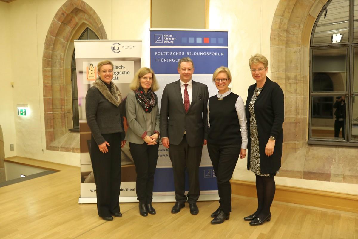 Gemeinsam mit dem Lehrstuhl für Kirchenrecht der Katholisch-Theologischen Fakultät der Universität Erfurt und dem Bund Katholischer Unternehmer e.V., lud das Poltische Bildungsforum Thüringen der Konrad-Adenauer-Stiftung Thüringen am 25. Januar 2018 zur 4. Erfurter Debatte über Wirtschaft und Glaube ein. 95 Zuhörer hatten sich hierzu im Coelicum der Katholischen Fakultät der Universität Erfurt eingefunden.
