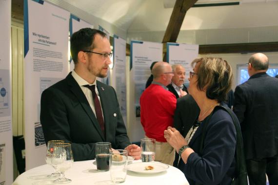 Zum Auftakt der bundesweiten Europadialoge „Europa. Das nächste Kapitel.“ lud das Politische Bildungsforum Thüringen der Konrad-Adenauer-Stiftung e.V. am 14. März 2019 in das Schloss Apolda ein. Nach dem einleitenden Kurzfilm „Mein Europa…“ der Konrad-Adenauer-Stiftung e.V. begrüßte Daniel Braun, wissenschaftlicher Mitarbeiter des Politischen Bildungsforums Thüringen die Gäste und bat die Gäste darum Fragen zu den Themen „Was soll Europa tun bzw. nicht tun?“, „Wo und wie erleben Sie persönlich Europa im Alltag?“ und „Was sind heute die drängendsten Herausforderungen für das vereinte Europa?“ zu notieren. Die Fragen des Publikums wurden vom Moderator Christian Blum von der Agentur Blum | Fischer | Rumohr GbR gesammelt und in die Themenblöcke Mehr oder weniger EU?, die gemeinsame Außen- und Sicherheitspolitik, Migration und Brexit eingeteilt. Die Themen wurden von Thomas Gottweiss, Bürgermeister der Gemeinde Ilmtal-Weinstraße, Oliver Dreute, Berater beim Präsidenten der EU-Kommission, Frank Schmidt, 1. Vorsitzender im Verein Internationale Städtepartnerschaften Apolda e. V., Dr. med. Alexander Kaiser, Stipendiat der Regina & Günter Ramthor-Stiftung und Rebecca Sparkes, Sprachlehrerin aus Großbritannien, diskutiert.