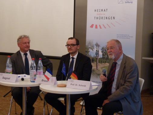 Am 17. Mai lud das Politische Bildungszentrum Erfurt zu einer Veranstaltung anlässlich der Wahlen zum französischen Präsidenten ein. Als Gäste waren diesmal Prof. Dr. Karl Schmitt, emeritierter Professor der Friedrich-Schiller-Universität Jena und Dr. Marc Sagnol, Leiter des französischen Kulturbüros in der Thüringer Staatskanzlei, geladen. Die Moderation wurde von Daniel Braun, wissenschaftlicher Mitarbeiter des Politischen Bildungsforums Thüringen, übernommen.