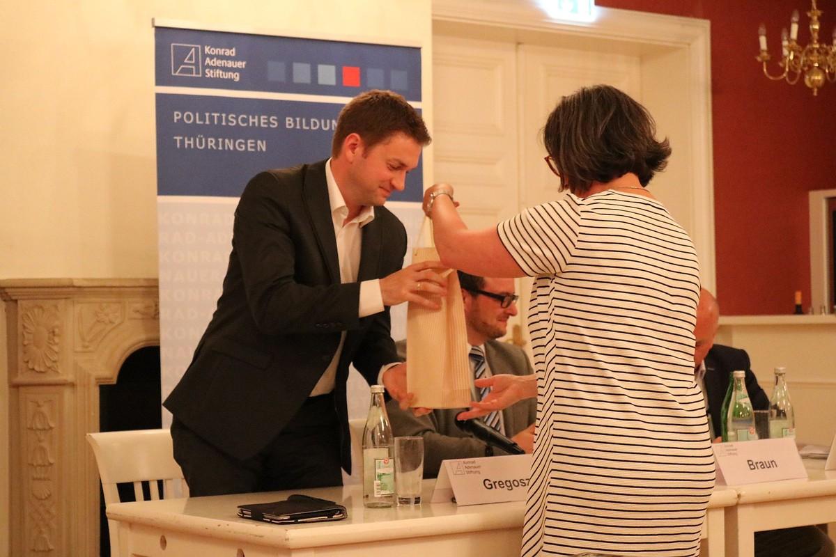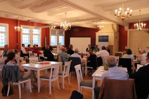 Zur Abendveranstaltung mit dem Thema „Freihandel als Grundlage deutschen Wohlstands“ lud am 08. Mai 2018 das Politische Bildungsforum Thüringen gemeinsam mit der Burg Bodenstein im Rahmen des „Bodensteiner Gesprächs“. Daniel Braun, wissenschaftlicher Mitarbeiter der Konrad-Adenauer-Stiftung führte moderierend durch den Abend und Manfred Grund, Bundestagsabgeordneter der CDU/CSU-Fraktion, sowie David Gregosz, Koordinator für Internationale Wirtschaftspolitik der KAS, hielten Vorträge zum Thema, welches im Anschluss mit den Gästen diskutiert wurde.