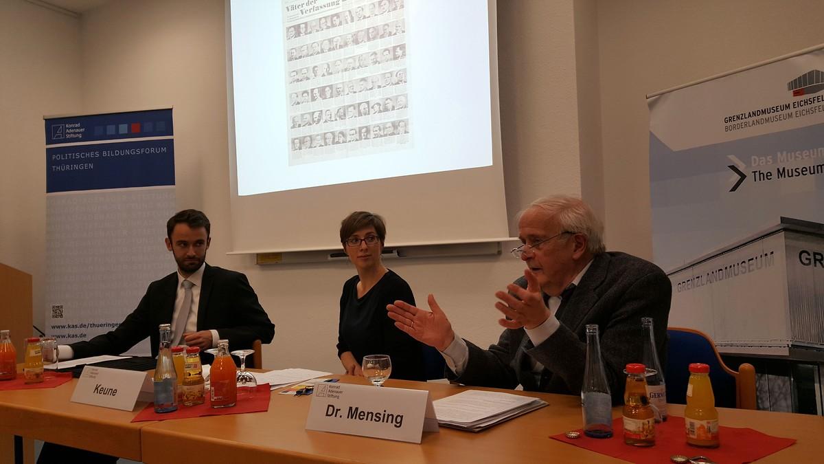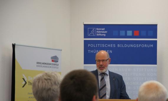 Am 04. Mai luden das Politische Bildungsforum der Konrad-Adenauer-Stiftung Erfurt und das Grenzlandmuseum Eichsfeld zu einem Vortrag über die historischen und aktuellen Herausforderungen des demokratischen Rechtsstaates ein. Nach der Begrüßung durch den Vorsitzenden des Fördervereins Grenzlandmuseum Eichsfeld, Horst Dornieden, und den KAS-Tagungsleiter Rolf Justi, erfolgte eine kurze Einführung in die Thematik durch Mira Keune, Geschäftsführerin des Grenzlandmuseums, ehe an die beiden Referenten Dr.