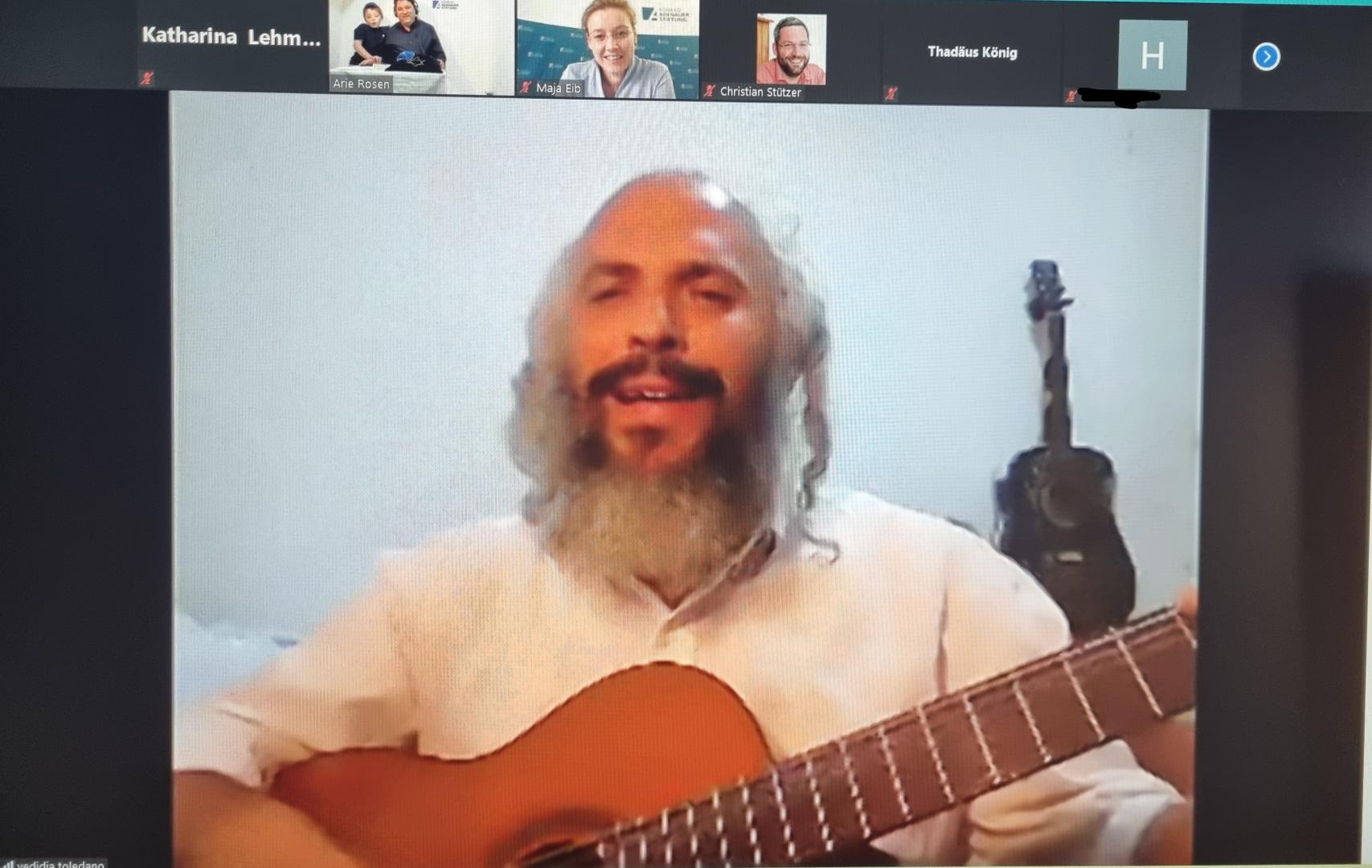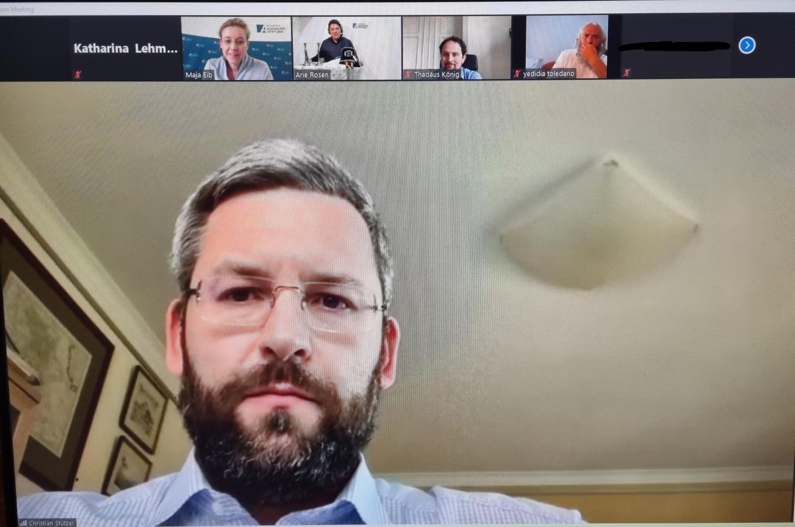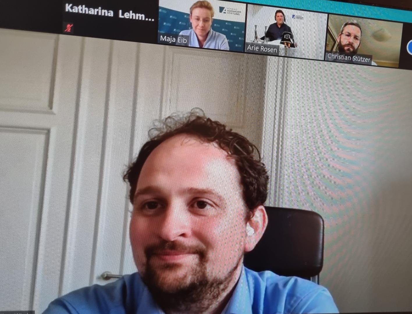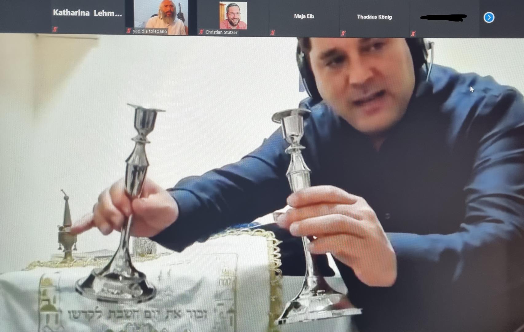 Nachdem Maja Eib auf Veranstaltungen mit Schulen und den Jugendwettbewerb „DenkTag“ der Konrad-Adenauer-Stiftung hinwies, übergab sie das Wort an Arie Rosen, der sich gemeinsam mit seinem Kollegen Yedidia Toledano aus Israel zugeschaltet hatte. Rosen wurde 1971 in Frankfurt am Main als Sohn einer jüdischen Familie geboren und zog mit 15 Jahren nach Israel, wo er zunächst noch wenig Interesse an seiner Religion zeigte. Erst über eine Bekanntschaft im Militärdienst fing er an, sich mit den jüdischen Traditionen und Regeln intensiver zu beschäftigen. Seine Mutter Lea Fleischmann ist eine ebenfalls in Jerusalem lebende deutschsprachige deutsch-israelische Autorin, welche in ihren Werken die jüdischen Traditionen verständlich erläutert. So schrieb sie auch das Buch „Schabbat“, aus welchem Arie Rosen innerhalb seiner Darlegungen einige Sätze bzgl. des Hintergrundes des Festes lesen sollte. Lea Fleischmann erhielt vor zwei Jahre für ihre Bemühungen um das deutsch-jüdische Verständnis das Bundesverdienstkreuz. Rosen selbst sieht seine Aufgabe ebenfalls als Vermittler zwischen Deutschland und Israel an.