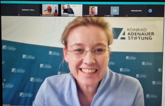 Die Landesbeauftragte und Leiterin des Politischen Bildungsforums Thüringen, Maja Eib, begrüßte alle Teilnehmenden aus Israel, Deutschland und Thüringen herzlich, stellte die Referenten vor und berichtet über Initiativen wie dem „DenkTag“ der Konrad-Adenauer-Stiftung auch über das Gedenkjahr 2021 zu „1.700 Jahre Jüdisches Leben in Deutschland“ sowie „900 Jahre Jüdisches Leben in Thüringen“ hinaus. Auch betonte sie, welche Verantwortung die Konrad-Adenauer-Stiftung trägt. Dank des Einsatzes des ersten Bundeskanzlers Konrad Adenauers und Namengebers der Stiftung gelang die Wiedereröffnung der Kölner Synagoge und die Annäherung an Israel nach den schrecklichen Gräueltaten der Nationalsozialisten und der fast vollständigen Zerstörung der Alltagskultur und Praxis des deutschen Judentums. Heute leben glücklicher Weise wieder fast 1.000 Jüdinnen und Juden in Thüringen, so Eib. Das Jüdische Erbe zu bewahren, kulturellen und interreligiösen Dialog zu fördern und gegen jegliche Art von Antisemitismus und Extremismus anzutreten, gehört zu den Kernaufgaben der Politischen Bildung der Konrad-Adenauer-Stiftung.