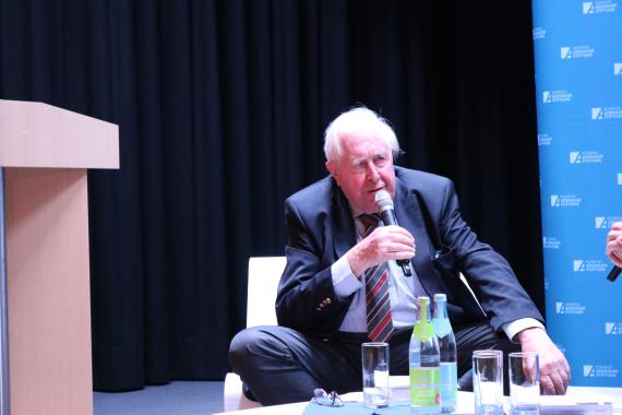 Zudem betonte Prof. Vogel, dass er als Ministerpräsident Thüringens unmittelbar daran mitgewirkt habe, die Folgen der deutschen Teilung zu lindern, Brücken neu aufzubauen und neue Perspektiven in einem vereinten Deutschland zu schaffen. Abschließend gab Vogel an, dass es, hätte er selbst eine ostdeutsche Biographie gehabt, deutlich schwerer gewesen wäre im Osten Ministerpräsident zu werden.