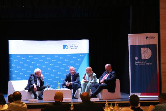 Während der Podiumsdiskussion unterstrich Bernhard Vogel insbesondere sein Wirken in Thüringen nach der Wiedervereinigung zwischen 1992 und 2003. Beispielsweise betonte Vogel, dass es ihm in seiner Amtszeit als Thüringer Ministerpräsident wichtig war, in Thüringen viele Hochschulen anzusiedeln oder die Anbindung des Erfurter Hauptbahnhofes an die Schnellfahrtstrecke „Deutsche Einheit“ (Berlin-München) zu ermöglichen. Sonst wäre es nicht gelungen für Thüringen einen Weg zur erfolgreichen Einheit zu bauen.
