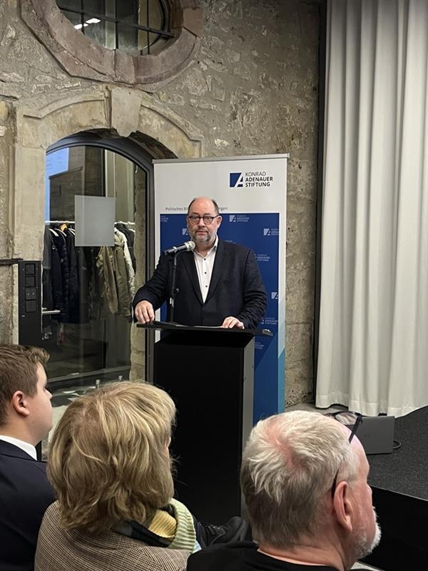 In diesem Zusammenhang brachte Dr. Christopher Beckmann den Gegenwartsbezug pointiert auf den Punkt: „Adenauer ist eine Figur aus dem letzten Jahrhundert und dennoch sind seine Grundüberzeugungen wichtiger, aktueller denn je.“