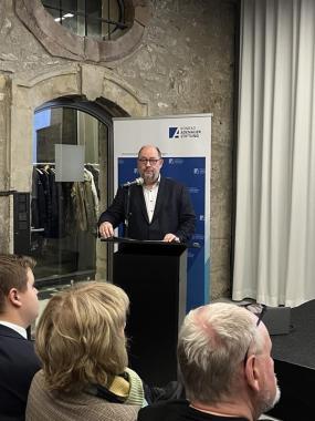 Dr. Christopher Beckmann eröffnete den inhaltlichen Teil des Abends mit einer Einführung, in der er beide Biografien parallel betrachtete – nicht um sie gleichzusetzen, sondern um durch den Vergleich Unterschiede, Gemeinsamkeiten und historische Kontexte präziser sichtbar zu machen. Er zeigte, dass die Lebenswege beider Männer wie „parallele Linien“ durch die Zeit laufen. Sie berühren sich nur selten, verlaufen aber durch dieselben Epochen, Krisen und Umbrüche und führen durch die deutschen Teilung in zwei gegensätzliche politische Ordnungen.