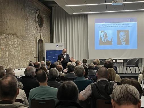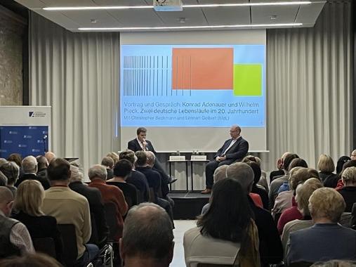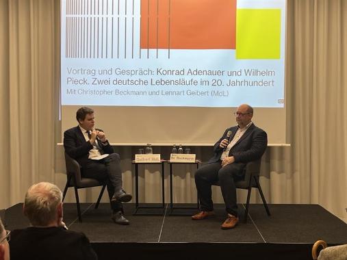 Ausgangspunkt des Abends war ein historisch bemerkenswerter Befund: Konrad Adenauer und Wilhelm Pieck kamen im Januar 1876 im Abstand von nur zwei Tagen zur Welt. Dennoch verkörpern sie grundverschiedene politische Traditionen und Staatsmodelle. Adenauer als erster Bundeskanzler der Bundesrepublik, Pieck als erster und einziger Präsident der DDR.