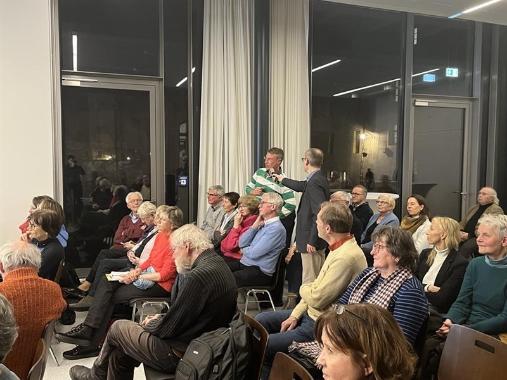 Die Publikumsdiskussion knüpfte genau hier an. Die Fragen beschäftigten sich unter anderem mit der Ost-West-Perspektive: wie wirken Adenauer und Pieck in der Erinnerung in Ost- und Westdeutschland bis heute nach? Welche Bilder wurden über Jahrzehnte geprägt und welche Rolle spielte politische Propaganda dabei? Auch die Frage, wie Adenauers Politik in Bezug auf die deutsche Einheit und die Wiedervereinigung einzuordnen ist, wurde aufgegriffen und kontrovers diskutiert. Betont wurde hierbei mehrfach, dass ein Vergleich keinesfalls bedeute, zwei Personen gleichzusetzen. Gerade die gemeinsame Betrachtung mache Unterschiede in Demokratieverständnis, Machtpraxis und politischer Zielsetzung besonders deutlich und helfe, historische Komplexität auszuhalten, statt sie zu vereinfachen, so Dr. Christopher Beckmann.
