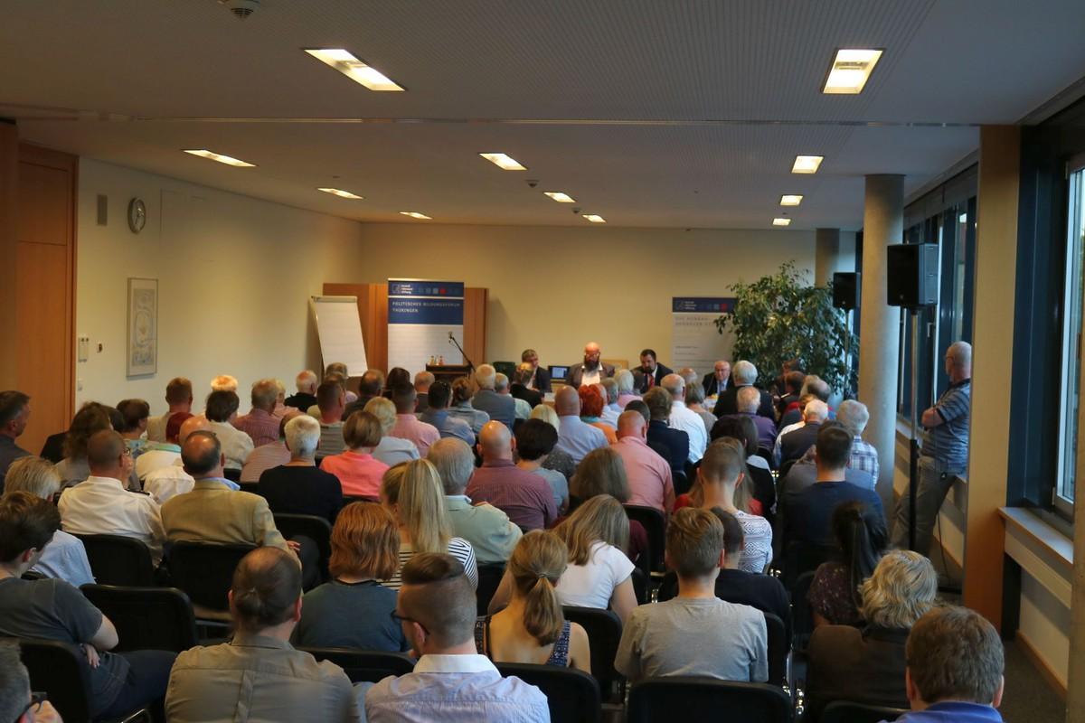 In der Diskussion wiesen sowohl Kai Christ als auch Jürgen Hoffmann auf die personellen und strukturellen Mängel bei der Thüringer Polizei hin. Über Jahre seien Stellen abgebaut worden, sodass bereits der Altersabgang schwer abzudecken sei. In Folge dessen fehlen auch Ausbilder für etwaige Mehrausbildungen. Dazu käme noch eine niedrige Besoldung, so entlohnt Thüringen seine Polizisten und Polizistinnen auf bundesweit niedrigem Niveau und beschäftigt noch einen mittleren Dienst ohne Aufstiegschancen. Der Innenpolitische Sprecher der CDU-Landtagsfraktion Wolfgang Fiedler signalisierte hier, dass man den Nachholbedarf erkannt habe, Fehler eingestehe und entsprechend handeln werde, diese in Zukunft zu beheben und wieder auszugleichen.