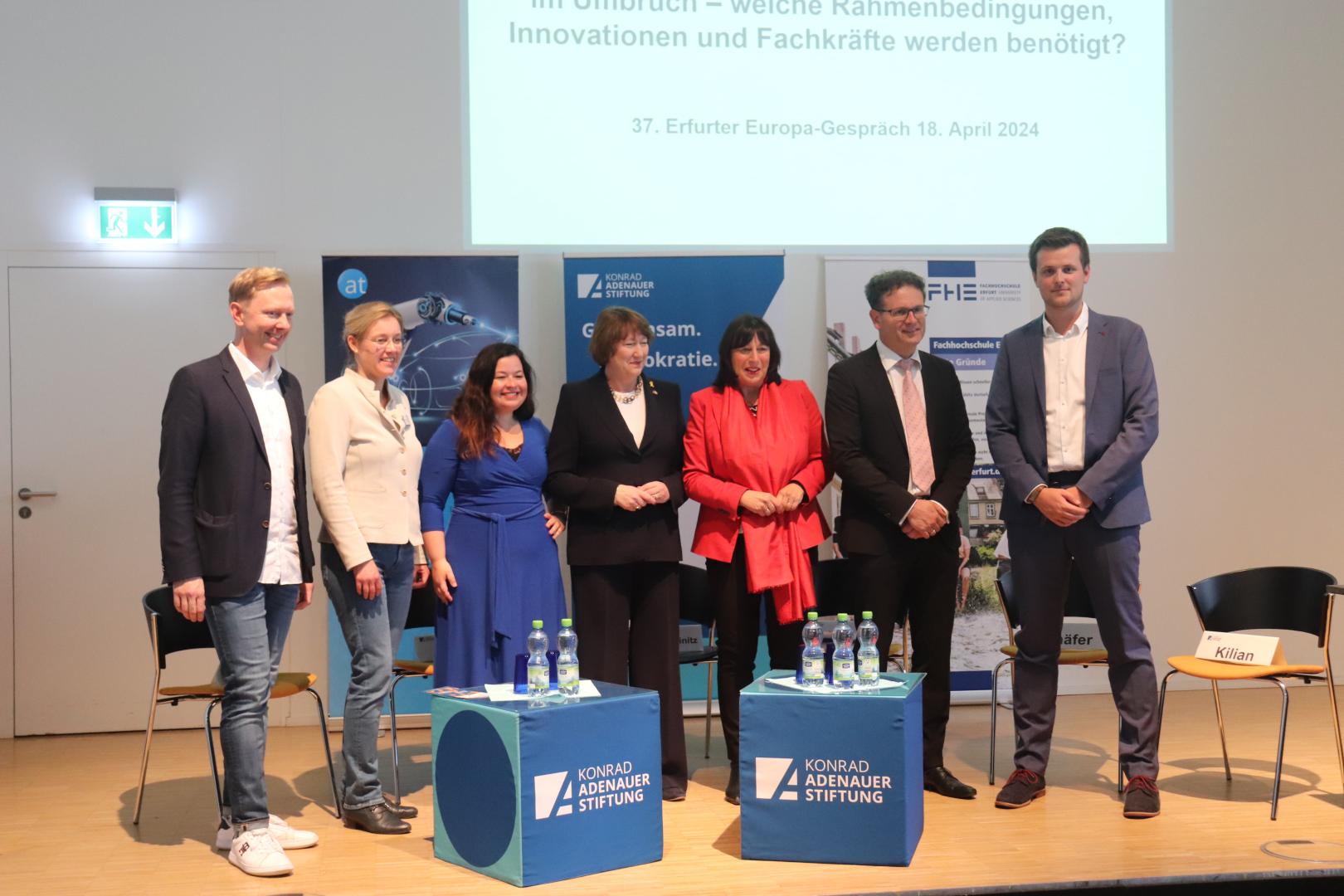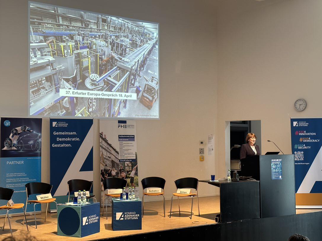 Unter dem Titel „Wirtschaft – Innovation – Fachkräfte“ fand am 18. April das 37. Erfurter Europagespräch des Politischen Bildungsforums Thüringen der Konrad-Adenauer-Stiftung im Audimax der Fachhochschule Erfurt statt.