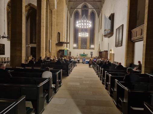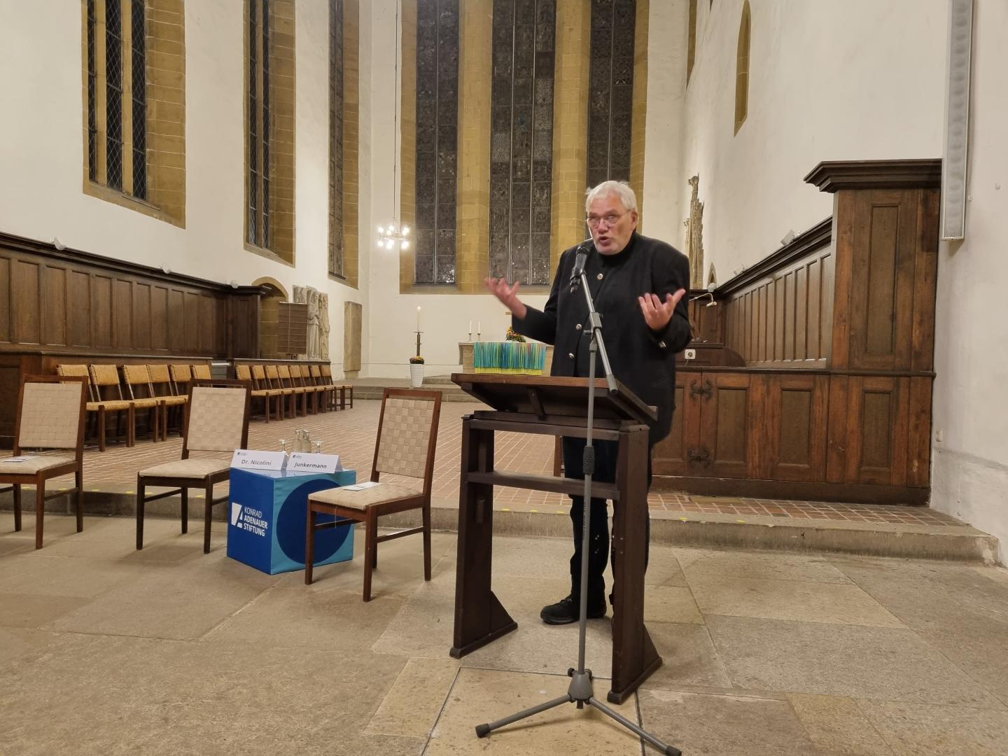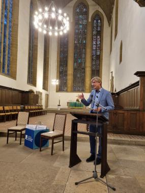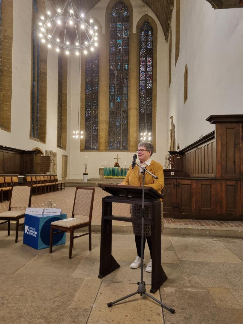 Für Maja Eib von Bildungsforum Thüringen der Adenauer-Stiftung und Augustinerkloster-Pfarrer Bernd Prigge war es eine der ersten Veranstaltungen in Präsenz seit anderthalb Jahren und auch damit ein Grund zur Freude.