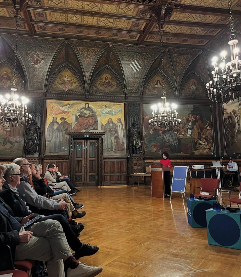 Alle Podiumsteilnehmer machten aus ihren unterschiedlichen Perspektiven deutlich, wie sie die veränderte Qualität in der aktuellen Debatte wahrnehmen und plädierten für den Blick auf die Menschen und die Angst der Juden weltweit, ihren „Zufluchtsort Israel“ zu verlieren. Man erinnerte zugleich auch an das Leid der palästinensischen Bevölkerung, die die Hamas als Schutzschild missbraucht und am wachsenden Hass in der Bevölkerung interessiert ist. Freude, das Israel angegriffen und Hass gegenüber Jüdinnen und Juden auch hier in Deutschland offen auf Demonstration zum Ausdruck gebracht wird, wurde zudem auf das Schärfste verurteilt.