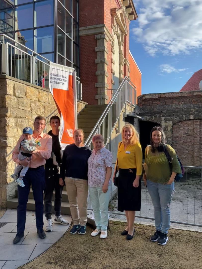 Nachdem über 60 Gäste, Eltern und Großeltern mit ihren Kindern und Enkeln eingetroffen waren, begrüßte zunächst Dorothea Storch, die Bürgermeisterin Camburgs, und die Landesbeauftragte der Konrad-Adenauer-Stiftung Maja Eib das Publikum herzlich. Beide machten Mut sich immer wieder auch für die Demokratie stark zu machen und sich zu engagieren. „Demkratie ist keine Selbstverständlichkeit, sondern muss jeden Tag neu gelebt und auch verteiligt werden“, so Storch. Ilona Mamiyeva, Mitglied im Verein Ukrainischer Landleute Thüringen e.V., nutzte die Möglichkeit in ihrem kurzen Grußwort, um sich ans Publikum mit einem Dank an die deutschen Bevölkerung zu richten, die auch hier in Camburg ukrainischen Flüchtlinge offen aufgenommen haben.