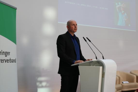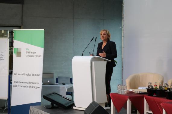 Rolf Busch, Landesvorsitzender des tlv, präsentierte die Ergebnisse, der 2016 durchgeführten Gewaltumfrage an Schulen. Diese repräsentative Umfrage verzeichnete im Jahr 2016 über 45.000 Fälle körperlicher Gewalt an Lehrern und 350.000 Fällen psychischer Gewalt, wovon 8000 letzterer Fälle in Thüringen verzeichnet wurden. Diese erschreckenden Zahlen, sowie die Ergebnisse der Umfrage des tlv von 2018 seien ein klares Indiz dafür das Thema aus der Tabuzone zu holen.