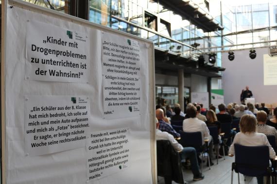 Jürgen Hoffmann brachte einen sehr relevanten Aspekt in die Diskussion ein, die Politik. Es sei mittlerweile allen bewusst, dass das Gewaltpotenzial an Schulen steigt. Wir brauchen keine weiteren Präventionsprogramme, so Hoffmann, sondern die Unterstützung der Politik. Sie muss aufzeigen, dass es sich bei der Gewalt gegen Lehrer um ein gesamtgesellschaftliches Problem handelt, das auf die politische Agenda gesetzt werden muss.