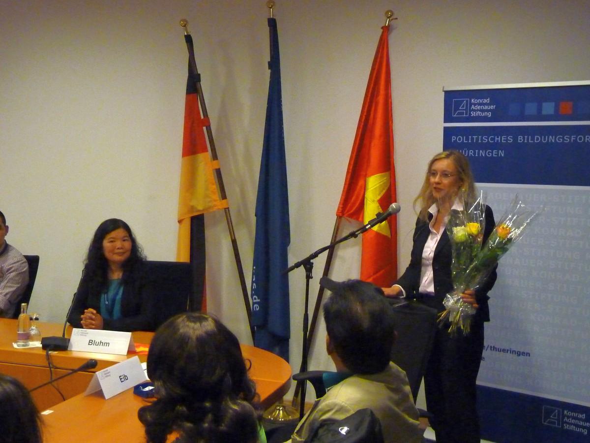 Die vietnamesische Studentin Phuong Anh Nguyen, die in Jena studiert brachte den Blick von außen in das Gespräch ein. Sie kennt die Geschichte der Vertragsarbeiter aus Vietnam, was sie leisten mussten und ihre Bemühungen dafür, sich ein neues Leben in einem fremden Land aufzubauen. Die Jenaer Studentin vertrat die Ansicht, dass die ehemaligen Vertragsarbeiter eine Brücke seien, die die Beziehungen zwischen Vietnam und Deutschland unterstützen und ausbauen. Darüber hinaus sah Phuong Anh Nguyen, dass die schon lange in Deutschland lebenden Vietnamesen zum Teil Vorbilder seien, von denen die jungen Generationen viel lernen können.