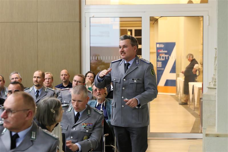 Dr. König ging auch auf den wichtigen Beitrag der Bundeswehr im Krisenmanagement und der Katastrophenhilfe ein: Bei Katastrophen und Krisen wie der Flutkatastrophe 2021, den Waldbränden in Brandenburg und Sachsen-Anhalt 2022 und der Corona-Pandemie arbeiten Soldatinnen und Soldaten Hand in Hand mit zivilen Rettungskräften, Polizei und Feuerwehr zusammen. Doch der russische Überfall auf die Ukraine 2022 läutete eine Zeitenwende ein – und rückte den zentralen Auftrag der Bundeswehr wieder in den Mittelpunkt.