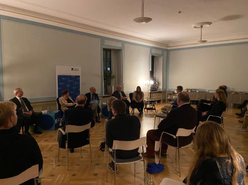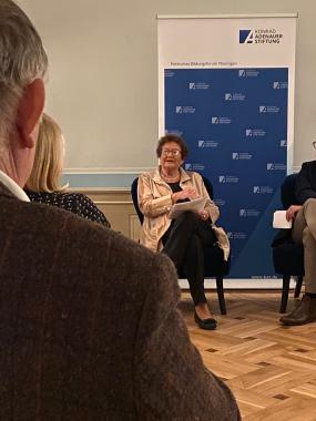 Für drei junge Wissenschaftler bedeutete der Mauerfall einen Wechsel von der Forschung in die Politik. Am 9. November sprachen diese auf einer KAS-Veranstaltung unter 2G-Regelung über ihre Erfahrungen. KAS-Landesbeauftragte Maja Eib eröffnete den Abend mit vielen persönlichen Worten zur Aufbauleistung in den letzten 30 Jahren und machte gleichfalls auch für heute Mut „Demokratiegestalter“ zu sein. Denn Demokratie bleibt nur erhalten, wenn der Gestaltungswille und auch die Bereitschaft Verantwortung auch in politischen Mandaten zu übernehmen nicht verloren geht. Die KAS-Stipendiaten Annika Huber, Julius Russmann, sowie der Altstipendiat Dr. Konstantin von Loveringen hatten dann das Vergnügen mit jeweils einem Protagonisten und Demokratiegestalter im Podium zu ihrer Zeit in der Politik nach dem Mauerfall im Gespräch zu sein.