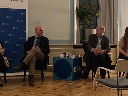 Die Zeit nach dem Mauerfall war chaotisch. Für Politiker, Wissenschaftler und Bürger eines wiedervereinten Deutschlands. Es gab kein Handbuch, keine vorgefertigte Checkliste. Lösungen wurden dennoch gefunden, wenn auch manchmal unkonventionell. Nichts war perfekt, das wird es aber in der Politik nie sein. Trotzdem konnten die Zuhörer des Abends ein Stück deutsche Geschichte erfahren. Denn für Vieles, was man heute kennt und für eine Selbstverständlichkeit hält, wie die Erfurter Altstadt oder die Universität Erfurt, waren Prof. Dr. Schipanski, Manfred Ruge und Dr. Gerd Schuchardt mitverantwortlich.