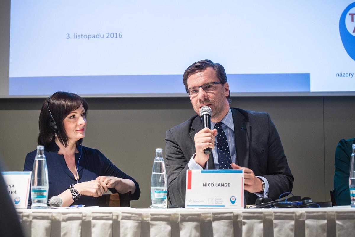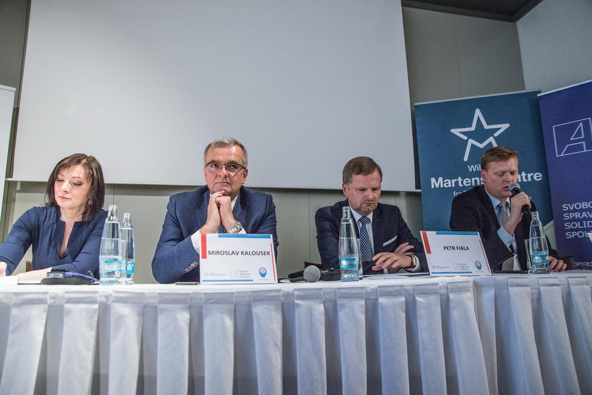 Im überfüllten Saal des bekannten Prager Caféhauses Louvre diskutierten die führenden Politiker der tschechischen Mitte-Rechts Parteien zuerst über die Zukunft der Mitte-Rechts-Parteien. Hierzu diskutierten die drei Vorsitzenden der Mitte-Rechts Parteien Pavel Bělobrádek (KDU-ČSL), Miroslav Kalousek (TOP 09) und Petr Fiala (ODS). Kalousek und Fiala sind beide der Ansicht, dass in der tschechischen politischen Landschaft ein Vakuum entstand, welches nun von den Populisten gefüllt wurde. Alle drei Parteivorsitzenden sind sich einig, dass es nun an ihren Parteien liegt, konkrete Vorschläge und Lösungen anzubieten um ihre verlorenen Wähler zurückzugewinnen. Während Kalousek darüber hinaus noch einen Wahlblock der Mitte-Rechts-Parteien für die Parlamentswahlen in Herbst 2017 sowie einen gemeinsamen Präsidentschaftskandidaten fordert, um sich den Populisten zu stellen, ist Bělobrádek der Ansicht, dass dies keinen Erfolg bringen würde. Fiala stellte sich einer Debatte über die Zusammenarbeit offen. Der stellv. Hauptabteilungsleiter Politik und Beratung Nico Lange aus der Konrad-Adenauer-Stiftung sprach sich in dem folgenden Panel für mehr Orientierung der Mitte-Rechts Parteien an die Bürger aus. Eine „Front gegen Babiš“ oder „Antibabiš Programm“ ist nicht ausreichend, die Bürger erwarten von der Politik konkrete Lösungen deren aktuellen Probleme. Gerade die Mitte-Rechts Parteien sollten vor allem über die aktuellen Probleme und deren Lösungen diskutieren, um das Vertrauen der Bürger wiederzugewinnen.