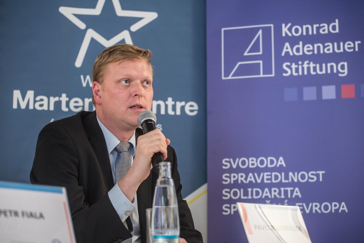 Im dritten Panel antwortete die Abgeordnete Markéta Adamová (TOP 09) auf die Frage wie Mitte-Rechts Parteien Populisten trotzen können, dass man die Hände nicht in den Schoß legen dürfe, sondern in den Wettstreit mit den Populisten treten müsse. Nico Lange von der KAS führte weiter aus, dass es beim Populismus im Kern um die Angst vor der Globalisierung gehe. Außerdem zeigt der Populismus den Politikern, dass sie sich von den Bürgern entfernt hätten. Martin Kupka (ODS) führte dabei weiter aus, dass die Parteien nun konkrete Lösungen anbieten müssen und Probleme benennen sollten. Dagegen wandte der Vorsitzende des Europaausschusses im Abgeordnetenhaus Ondřej Benešík (KDU-ČSL) ein, dass viele traditionelle Parteien gar nicht wüssten, wie sie Probleme benennen sollen. Hierbei sieht er auch das Problem der falschen Political Correctness. Außerdem führte er aus, dass ANO keiner bestimmten Ideologie angehöre und nur aus Umfragen leben. Lange widersprach dem jedoch und meinte, dass Populisten die Ideologie „Wir gegen die“ verfolgen. Außerdem stellte er fest, dass die etablierten Parteien es versäumt hätten, die Diskussion zu führen, was die deutsche, tschechische aber auch die europäische Identität ausmacht. Was heißt es, ein Tscheche oder sogar ein guter Tscheche zu sein? Umfragen an sich sind nichts schlechtes, ganz im Gegenteil, sie gehören zu einer professionellen Parteiarbeit. Sozialwissenschaftliche Grundlage sollten auch die Programme der Mitte-Rechts Parteien haben. Alle Redner waren sich jedoch einig, dass die Populisten vom Unmut der Bürger leben und die Parteien deswegen als Problemlöser agieren sollten.
