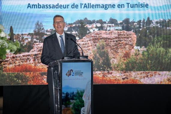 Am 16. Juni 2022 feierte das Länderbüro der Konrad-Adenauer-Stiftung in Tunis sein 40-jähriges Bestehen, zusammen mit den tunesischen, deutschen und internationalen Partnern. Die Feierlichkeiten fanden auf den Anhöhen des historischen Karthagos mit Blick auf die punischen Häfen statt.