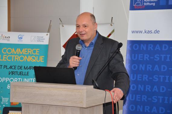 Die Veranstaltung wurde mit einer Vorstellung der rechtlichen Aspekte des Onlineverkaufs durch Slim Abdeljali (Universitätsdozent und Regierungsberater für die nationale Strategie bezüglich des digitalen Markts Tunesien) und Khabbeb Hadhri (Leiter der Entwicklung des Onlinehandels und der immateriellen Wirtschaft) eröffnet. Daran anschließend folgte eine Präsentation der Vorteile der elektronischen Bezahlung sowie möglicher sicherer Onlinezahlungsmittel von Lotfi Debbabi (Koordinator der Abteilung Retailbanken und Netzwerk bei STB).