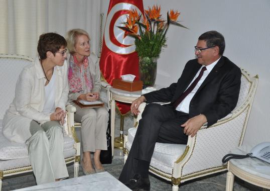 Neben zahlreichen politischen Gesprächen mit dem Staatspräsidenten der Republik, Beji Caid Essebsi, Regierungschef Habi Essid, Außenminister Taieb Bacchouche, Finanzminister Slim Chaker sowie dem Gesundheitsminister Said Aidi stand die Teilnahme Konferenz „Beschäftigung und Bildung“ am Dienstag, 20. Oktober 2015, im Zentrum ihres knapp dreitägigen Aufenthaltes. Darüber hinaus hatte Kramp-Karrenbauer die Gelegenheit, mit der Friedensnobelpreisträgerin Wided Bouchamaoui, Mitglied des kürzlich ausgezeichneten Quartetts und Präsidentin des Arbeitsgeberverbandes und KAS-Partners UTICA, zusammenzutreffen.
